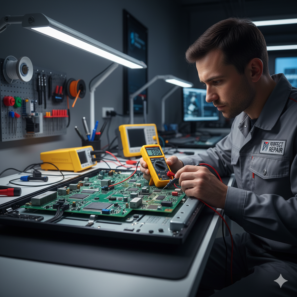 Our team of certified technicians specializes in chip-level motherboard repair, screen replacement, backlight repair, and Smart TV software issues. We use only genuine spare parts to ensure long-lasting performance and customer satisfaction.