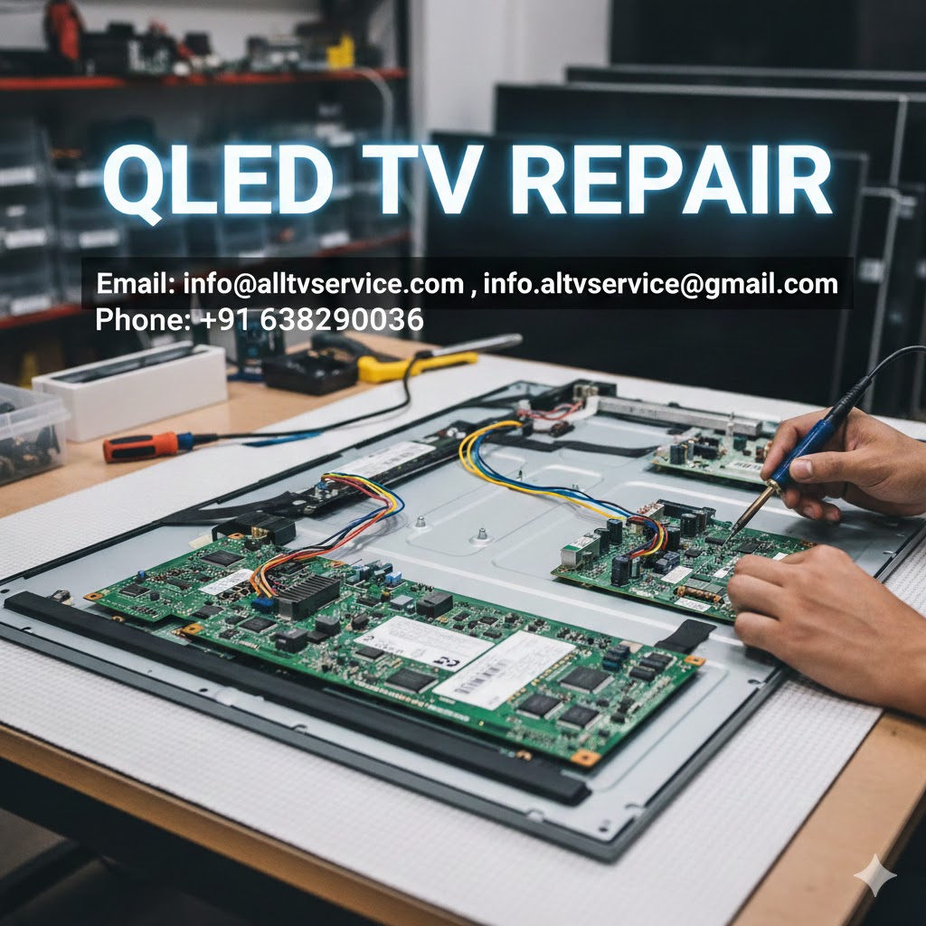 For professional QLED TV repairs in Coimbatore, contact ALL BRAND TV Repair and Services Center. Our skilled technicians are ready to fix all QLED TV issues, from display problems to software glitches, sound issues, and more.
